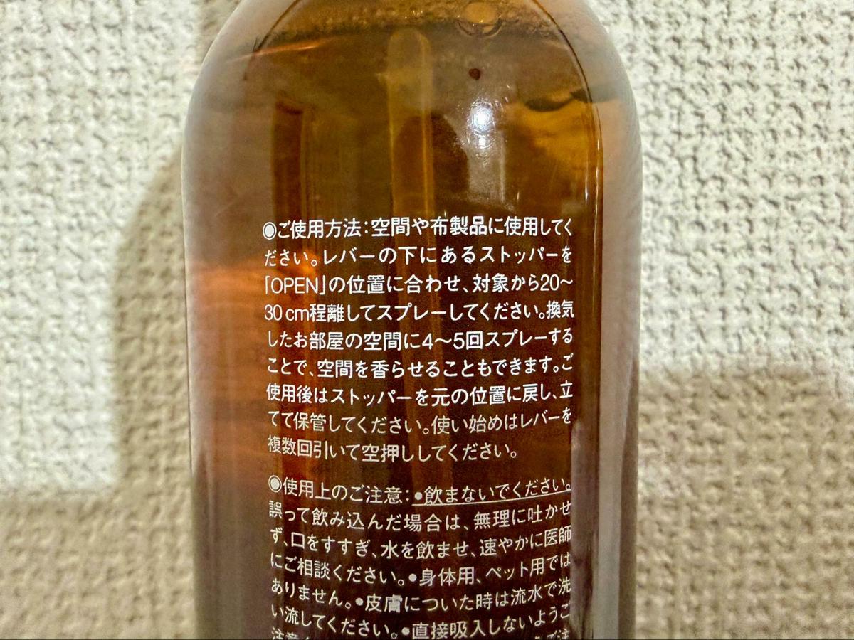 しかし、このルームフレグランススプレーの真骨頂は、香りが「空間」として自分を包み込んでくれることにあります。