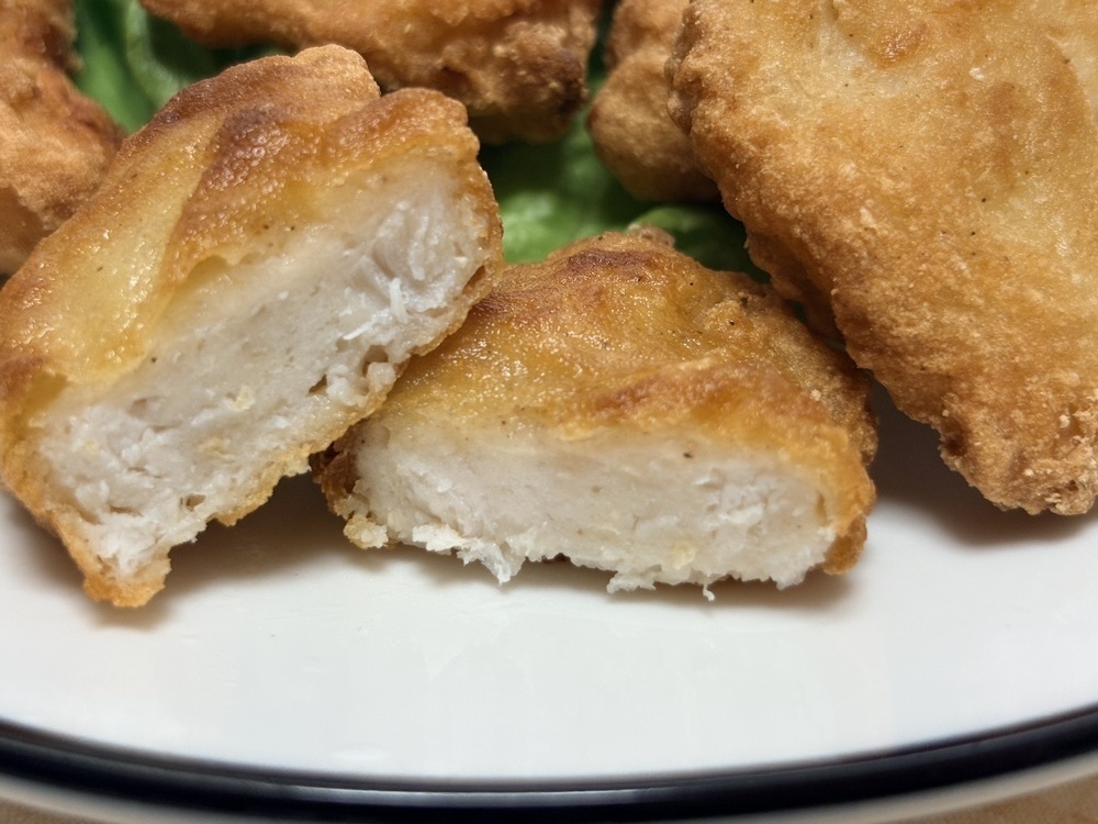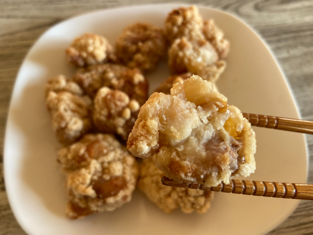 調理法は2通りあり、たっぷりの油で揚げると、衣は薄くサックリ、中はジューシーな「鶏肉感」のある仕上がりになり、ご飯が進む味わいです。