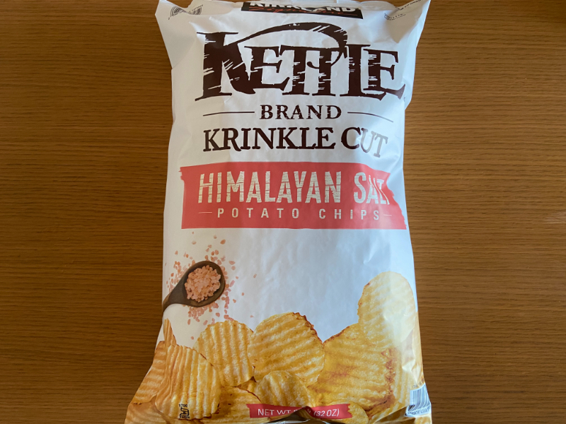 とにかく大容量でサイズが大きい商品が並ぶコストコで、枕のような907gというビッグサイズで販売されているのが「ヒマラヤンソルトケトルチップス」です。
