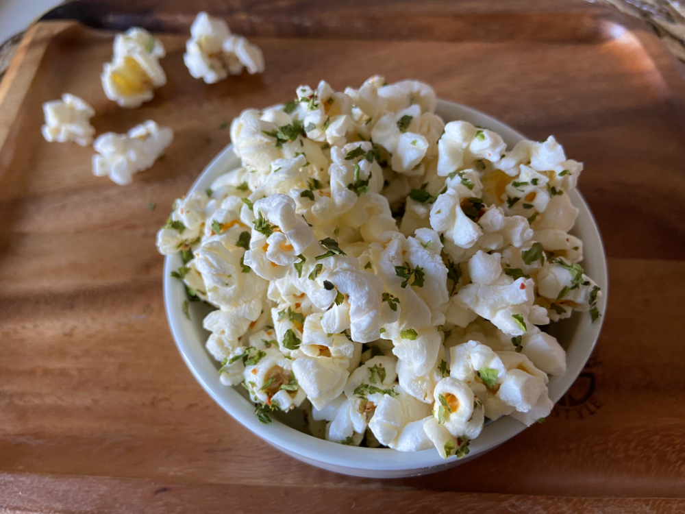 完成品は塩がしっかり効いた軽い食感です。アレンジとして、青海苔をまぶした「のり塩」(七味を加えるとおつまみ風)、溶かしたチョコでコーティングして冷やした「塩チョコ」、ホワイトチョコやマシュマロ、ストロベリーパウダーと絡めて固めた「ストロベリーポップコーンバー」などが楽しめます。