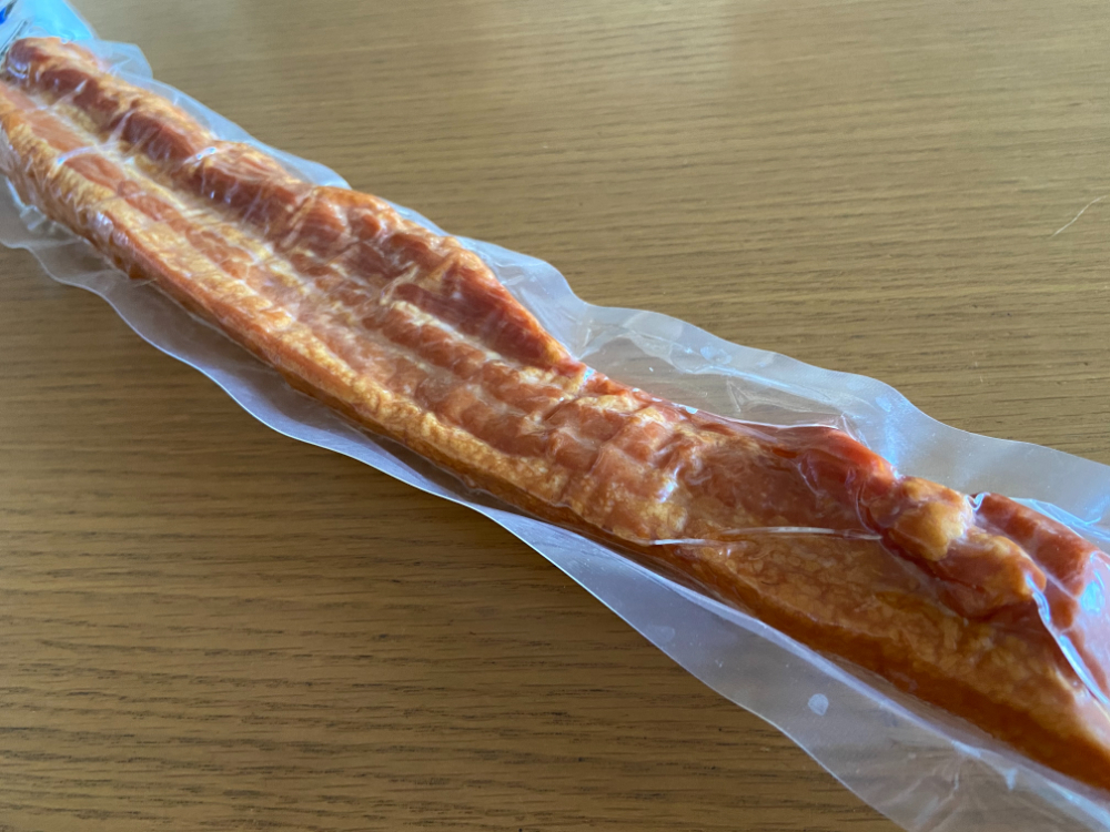 丁寧に吊るして加熱することで旨味が凝縮されており、長さは約43cm、重さは約489gと見た目のインパクトも抜群です。