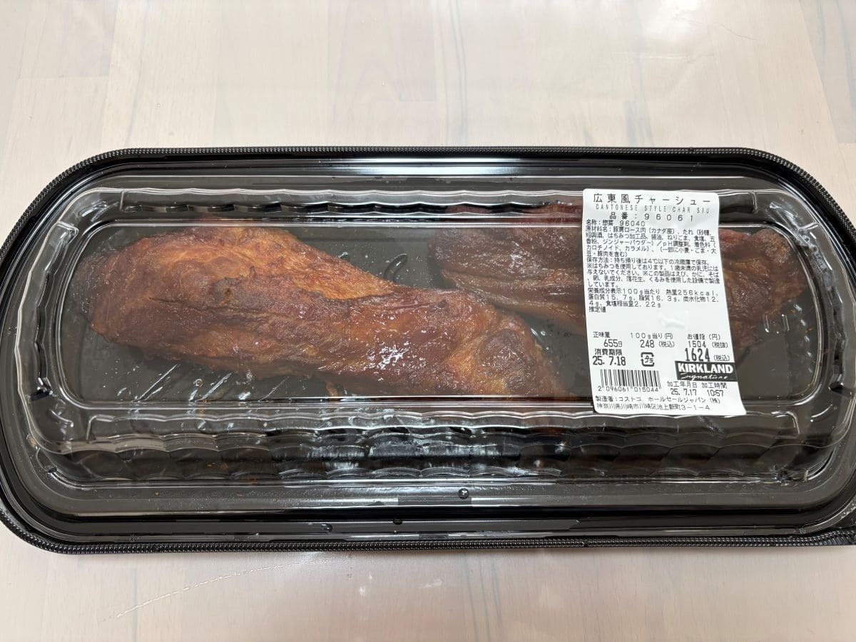 コストコのホットデリコーナーに並ぶ「広東風チャーシュー」は、量り売りで家族の人数に合わせて量を選べるお惣菜です。