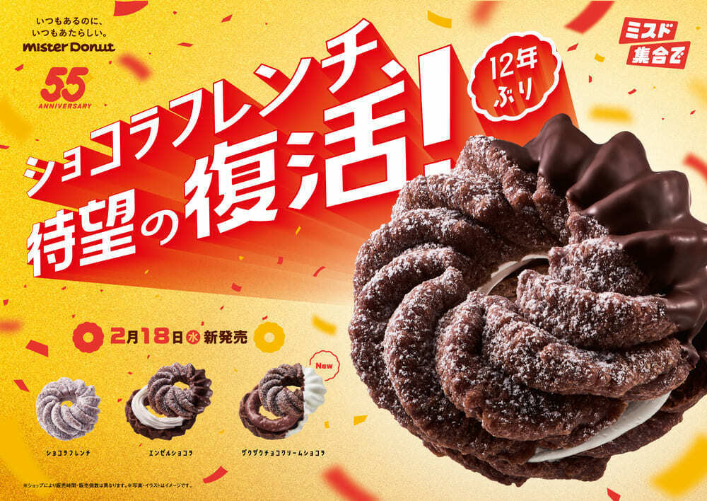 ミスタードーナツが、創業55周年を記念した「ショコラフレンチシリーズ」全3種が2月18日(水)から期間限定で販売します!