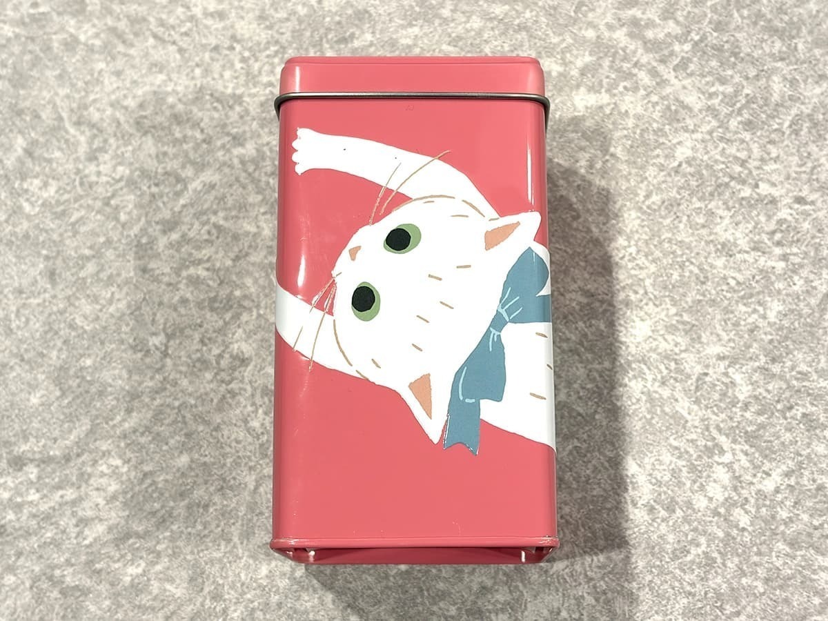 猫の形に型取られた缶のフォルムが目を引くこちらの商品は、カルディのオリジナルアイテムで、価格は378円(税込)です。