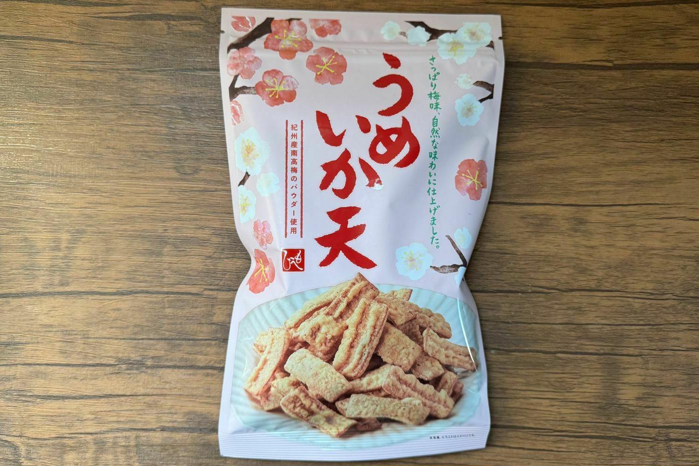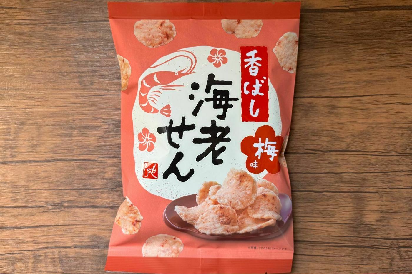 少し硬めの食感の海老せんをベースに、ほのかに感じられる梅のさっぱりとした風味がいい味のアクセントになっています。