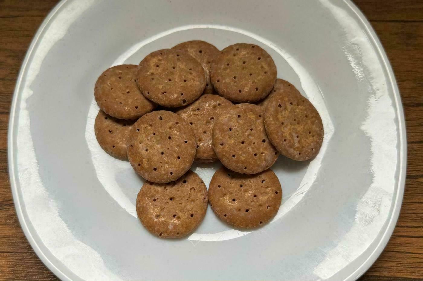 実際に食べてみると、一般的なビスケットよりも硬めのカリッとした独特の食感です。