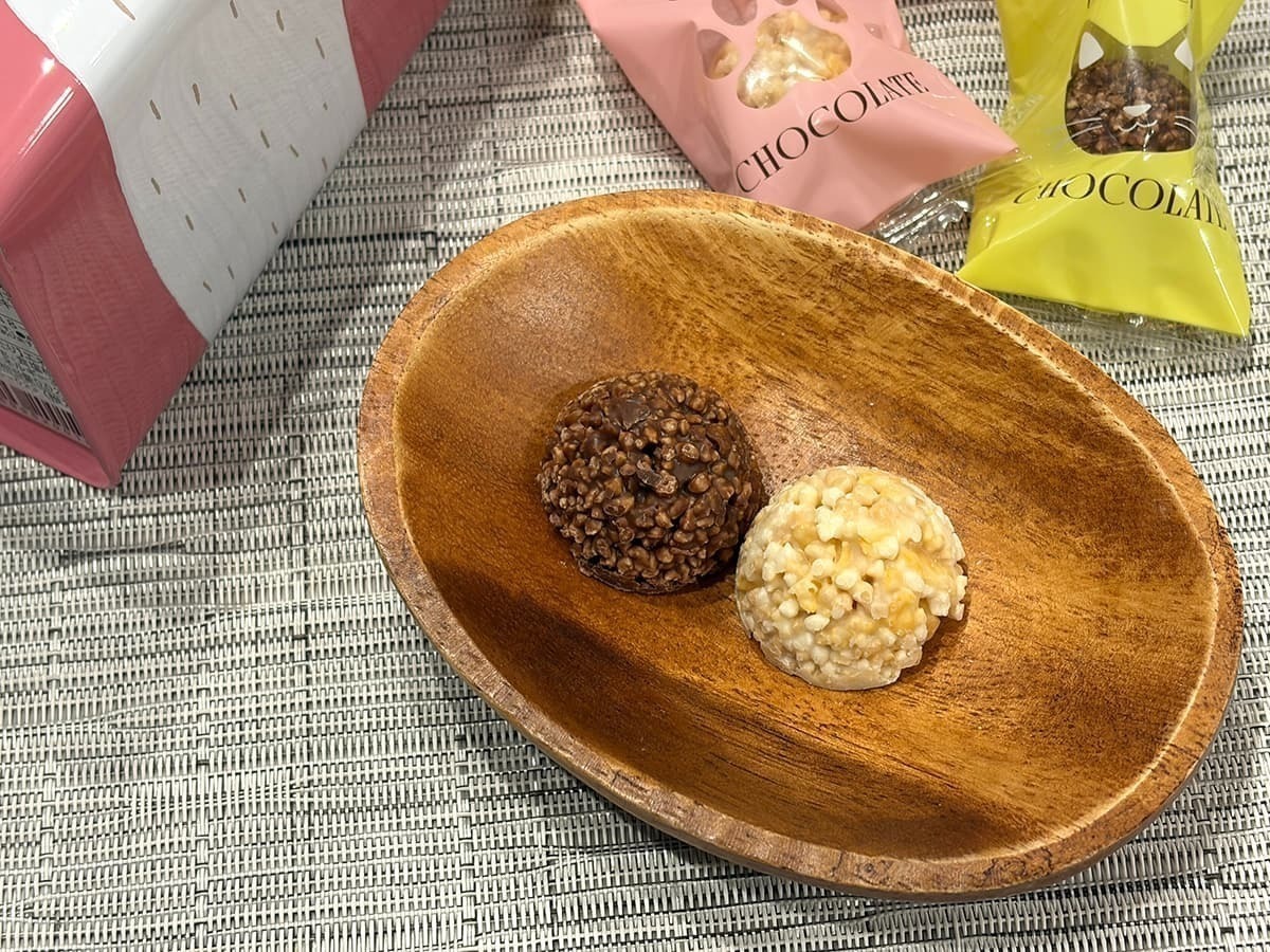 サクサクとした軽快な食感と、ヘーゼルナッツの濃厚なコクが絶妙に調和します。一粒は小ぶりながらも、その多層的な味わいによって一粒あたりの満足感が非常に高い、贅沢なショコラです。