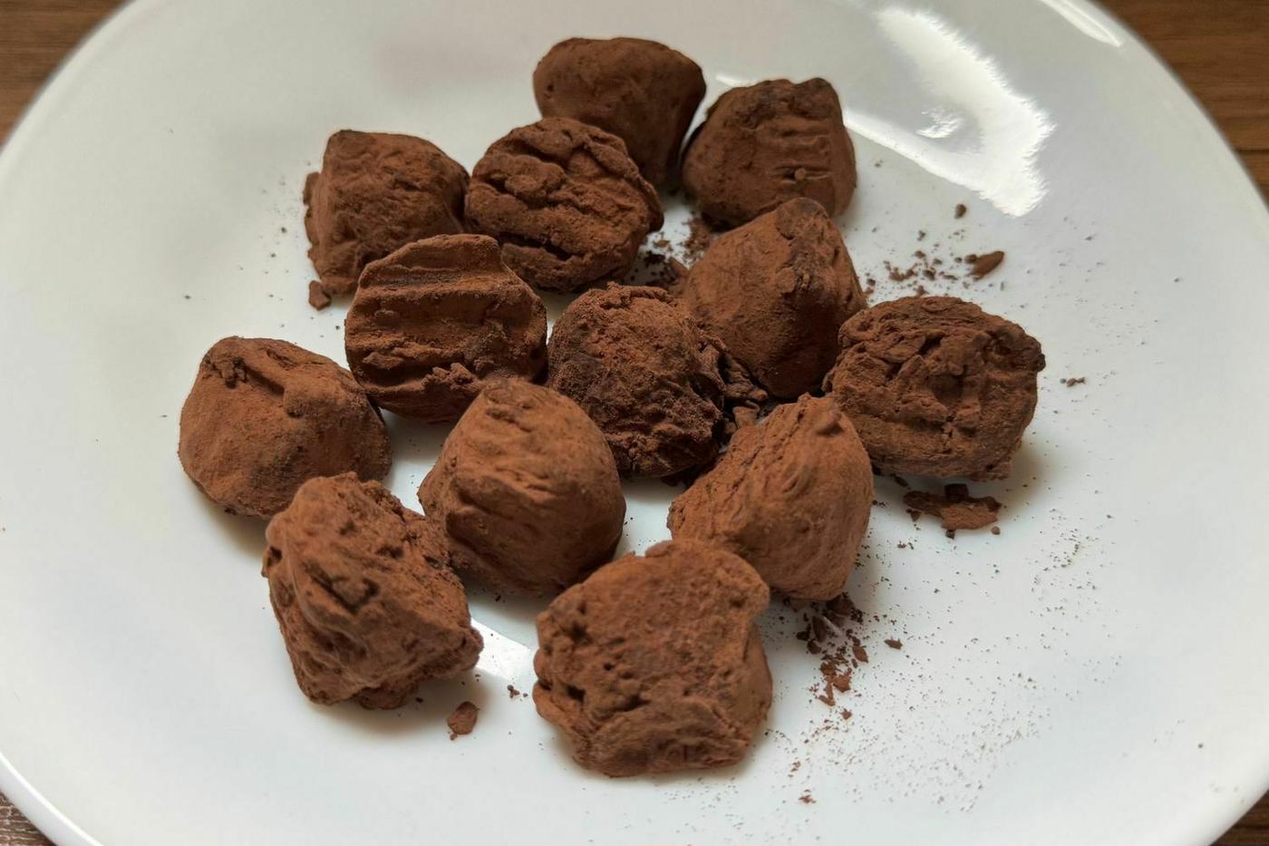 一粒口に含むと、まずはダークチョコ特有の心地よいほろ苦さが広がり、続いて中のガナッシュがとろけるような食感で溶け出す味わい。