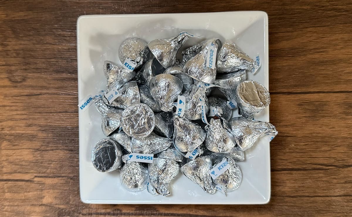 袋を開けると、銀紙に包まれたチョコレートがたっぷり。