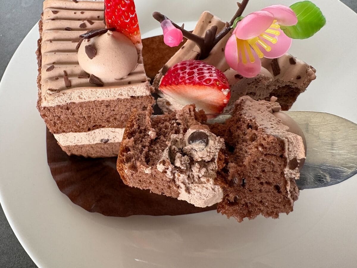 しっとりと口どけの良いココアスポンジの間には、まろやかで食べやすいチョコクリームがたっぷりとサンドされています。