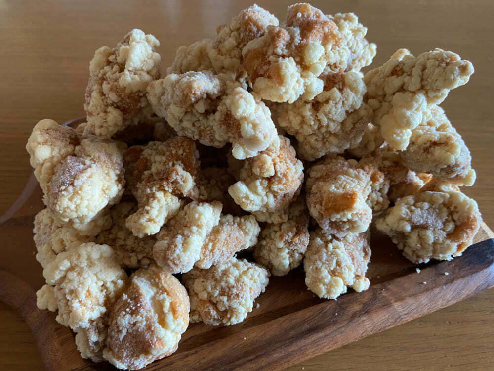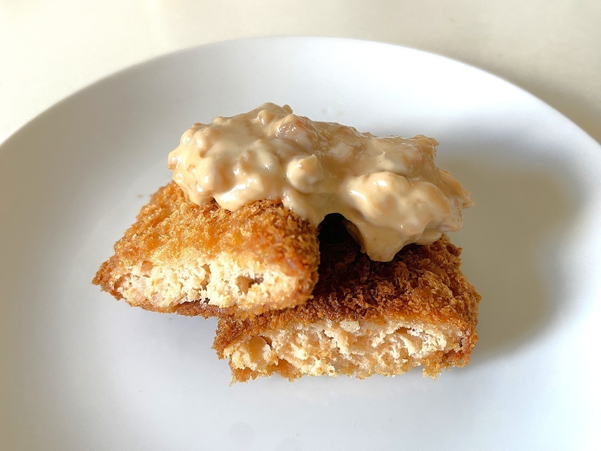 実食すると、外はカリッと、中はもっちりとした食感で、溶けた砂糖のきつね色とザクザク感が相まってお店のような仕上がりになります。