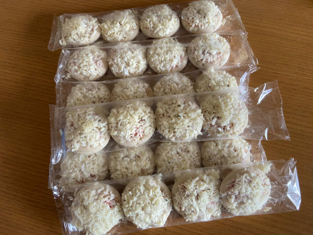 袋から出して耐熱皿に並べ、電子レンジで30秒~1分ほど軽く温めた後、トースターで3~4分加熱し、チーズが溶けて焼き色がつけば完成します。