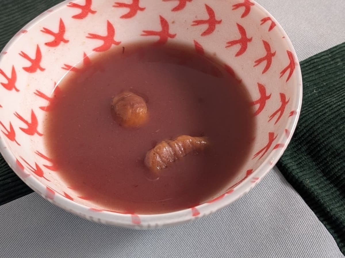 あんこと同量のお湯で割って、天津甘栗をトッピング。