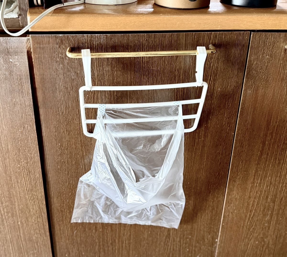 ゴミ袋を分別するだけじゃない!「扉に引っ掛けて使える ゴミ袋ハンガー」