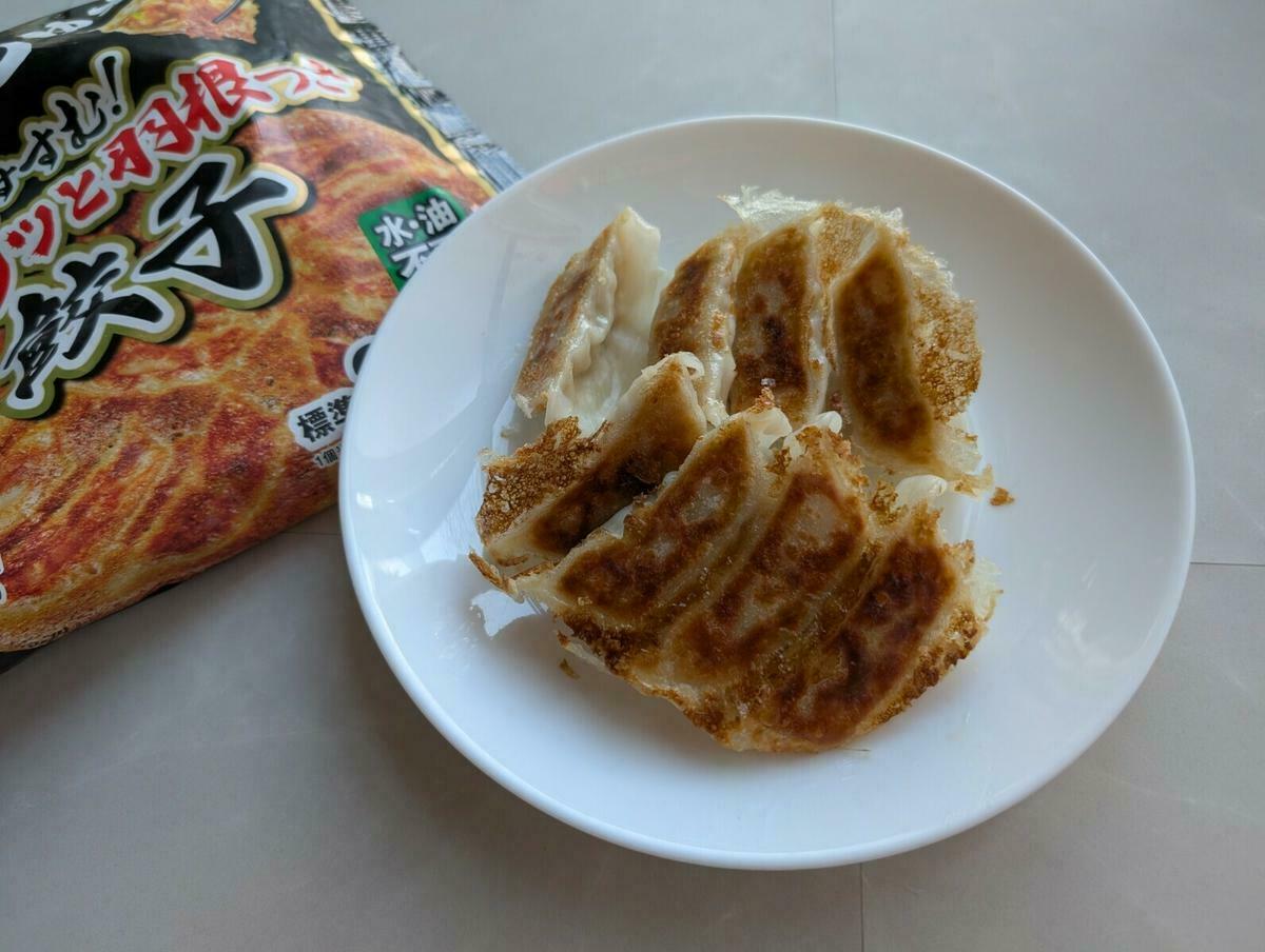 続いてご紹介するのは、夕食のメインやお酒のおつまみにぴったりな「パリッと羽根つき餃子」です。