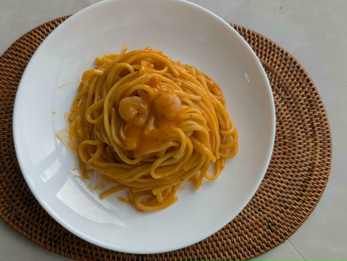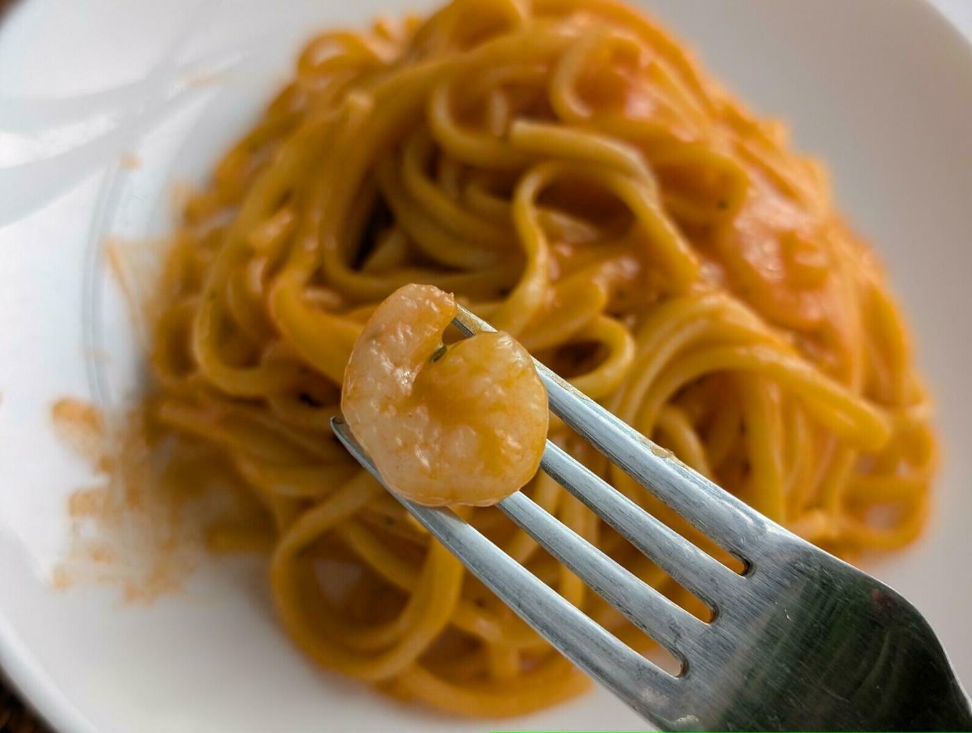 パスタでもう1品、同じく199円(税込)の「海老好きのための海老トマトクリーム」です。