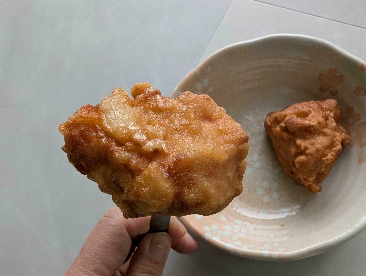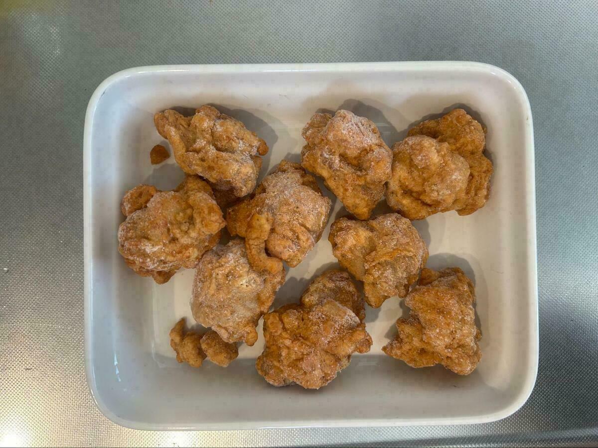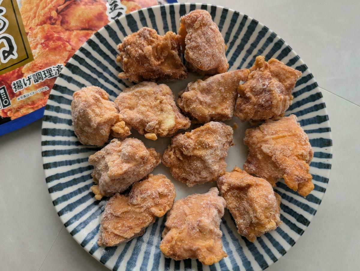 冷凍から揚げにありがちな不自然な丸みはなく、一つひとつがゴロッと大きく、まるでお店で手作りしたようなデコボコ感があります。