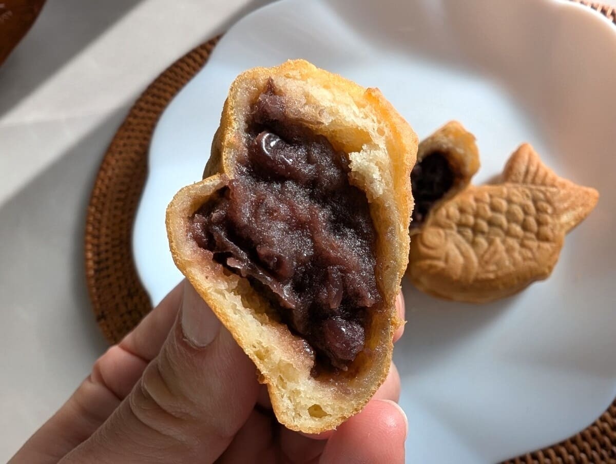 中には存在感のある「粒あん」がしっかり。甘さ控えめで後味が軽いので、食後のデザートにも重たくなりません。