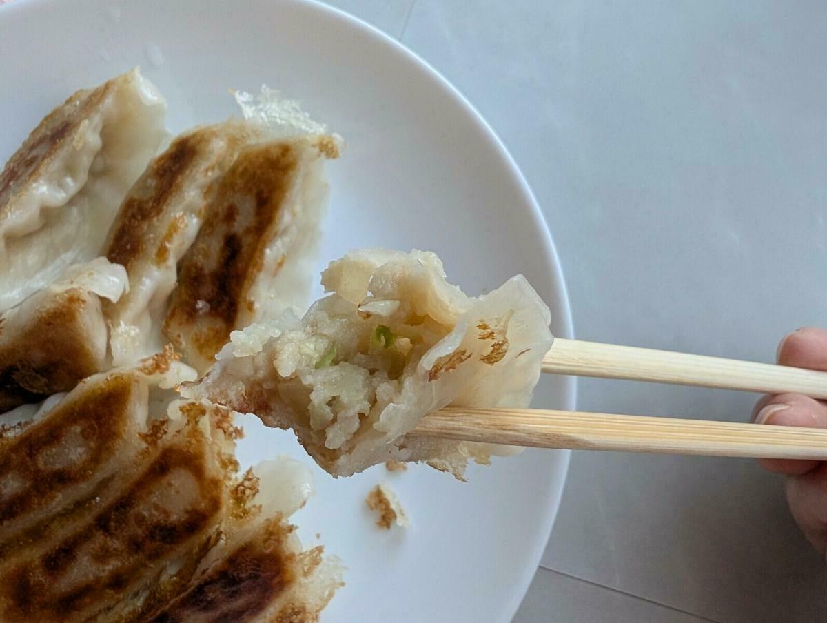 中のあんはひき肉と野菜のバランスが良く、ニンニクの風味がガツンと効いていて「しっかり餃子を食べている」というパンチのある味わいです。