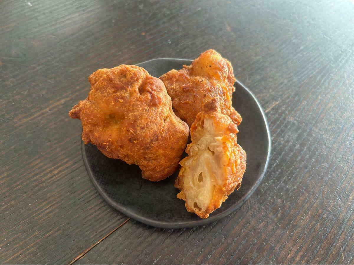 最大の特徴は、驚くほどしっとりとしていてやわらかいこと。塩麹に漬け込まれているため、お肉の水分が保たれ、ふんわりとした食感を楽しめます。衣は薄めで脂っこさが少なく、鶏肉本来の旨味がダイレクトに伝わります。