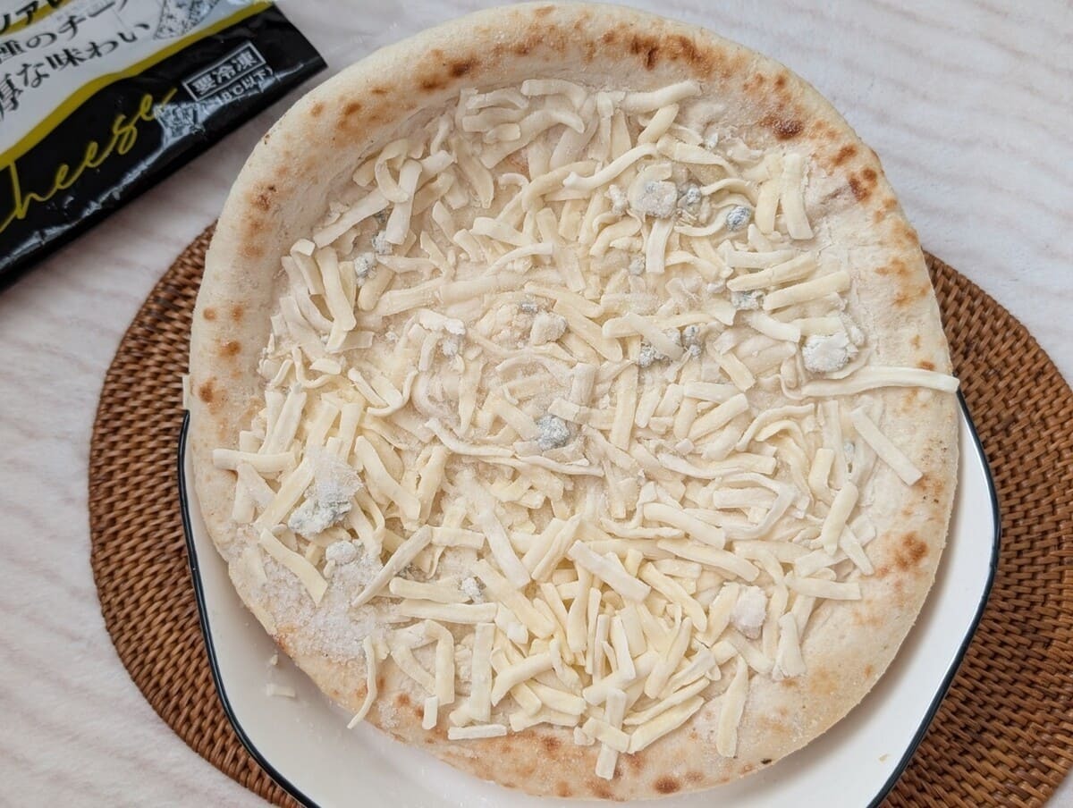 袋から取り出すと、焼く前の段階ですでに生地の全面を覆い尽くすほどのチーズがたっぷり!