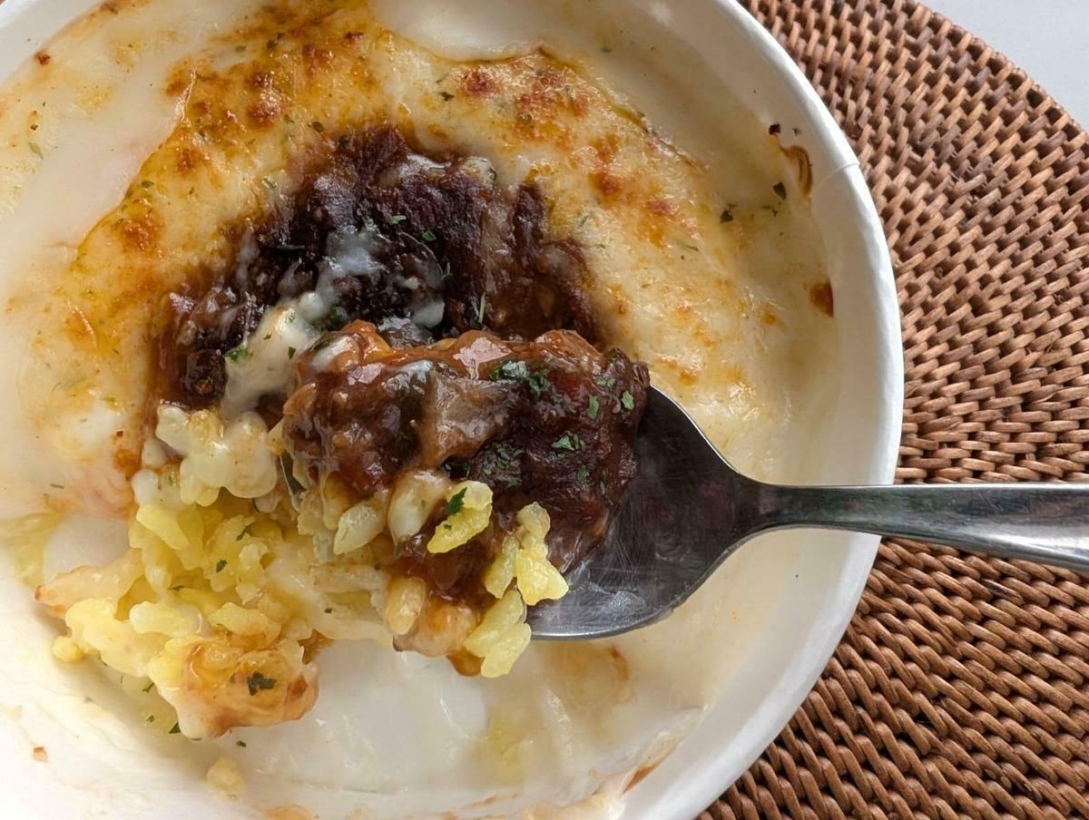 じっくり煮込まれた特製デミグラスソースは、牛肉や野菜の自然な甘みと深いコクがあり、冷凍とは思えない仕上がりです。