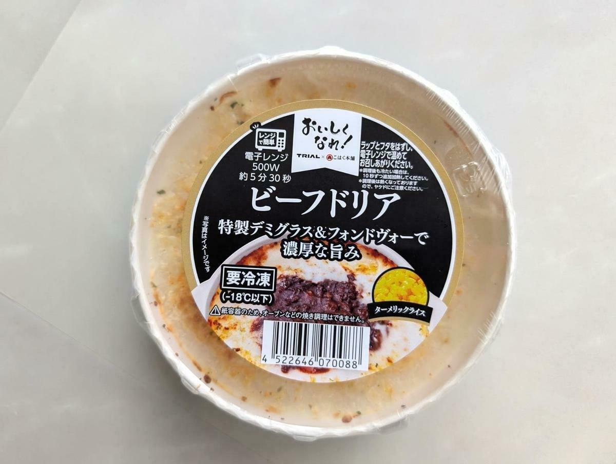トライアルの自社ブランド「こはく本舗」の「ビーフドリア」は、レンジで温めるだけで本格的な洋食が楽しめる一品です。