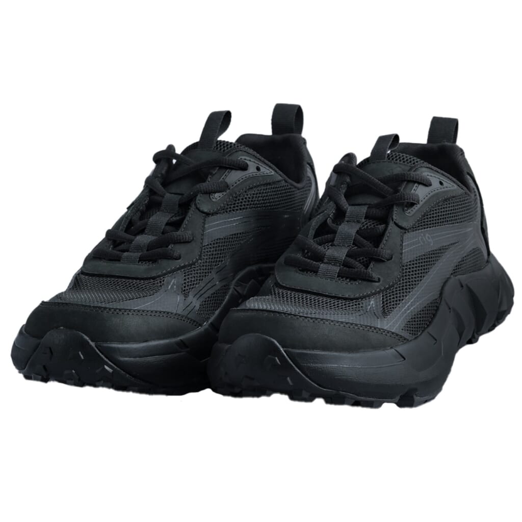 “hoja(ホジャ)”と命名されたこちらのモデルは、⻑時間のハイキングやトレイルランニングを想定した本格派。アッパーには軽量なメッシュ素材を採用し、足捌きも楽にしてくれます。