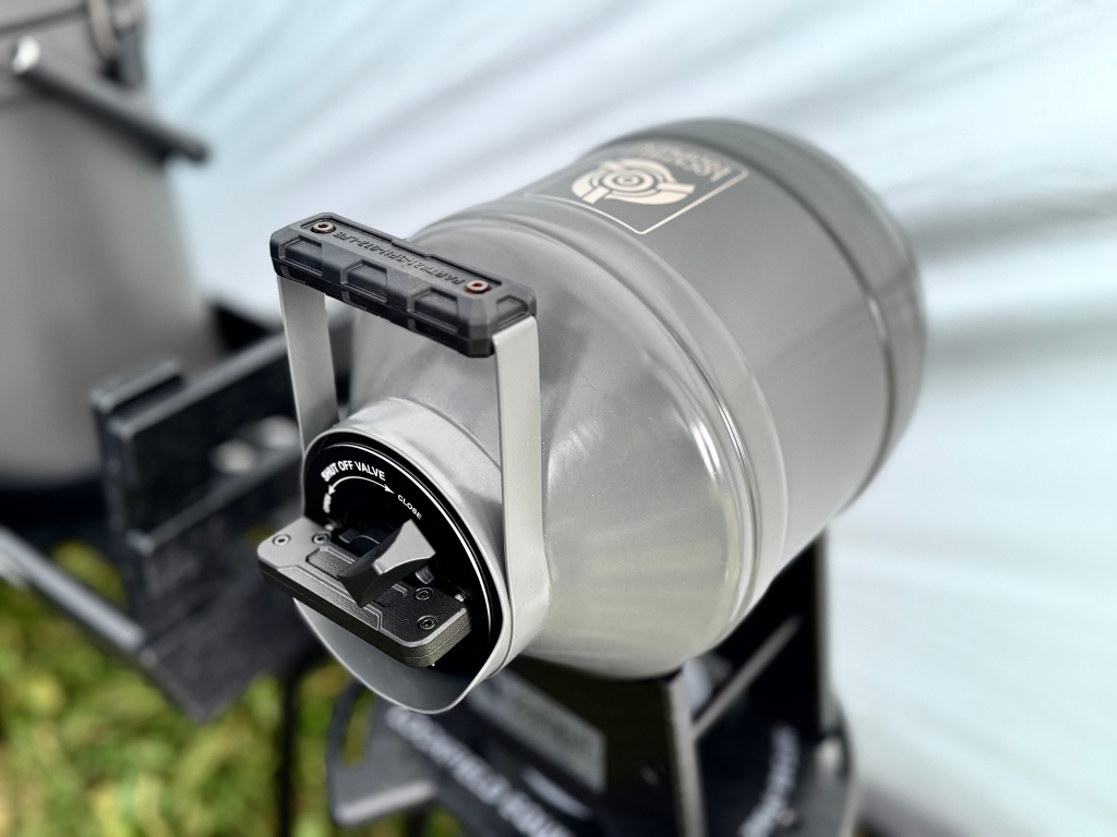 こちらのタクティカルテイスト漂うアイテムは、人気ガレージブランド、ロックフィールドイクイップメント(以下LFE)のアイテムでカスタムされたもの。ベースに使用しているのは、スノーピークの保温保冷ジャグ「サーモタンク」でした。