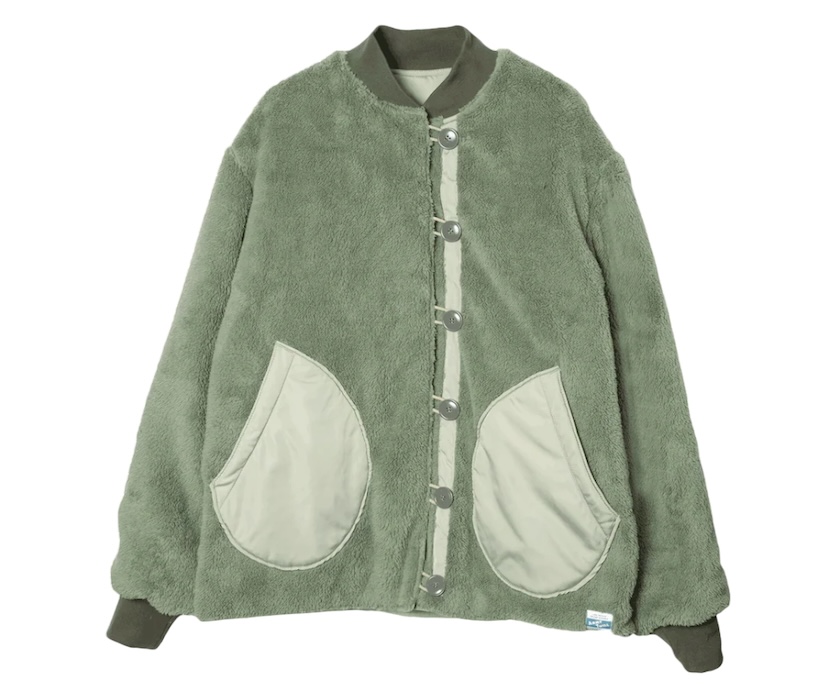 ベースとなったのはアメリカ軍が40年代に使用していたライナージャケット。リブ使いが特徴の希少なヴィンテージウエアを再現しつつ、シルエットはモダンにアレンジ。クリーンな質感のポリエステルとウォーム感のあるフリースと、表裏で表情が異なるリバーシブル。