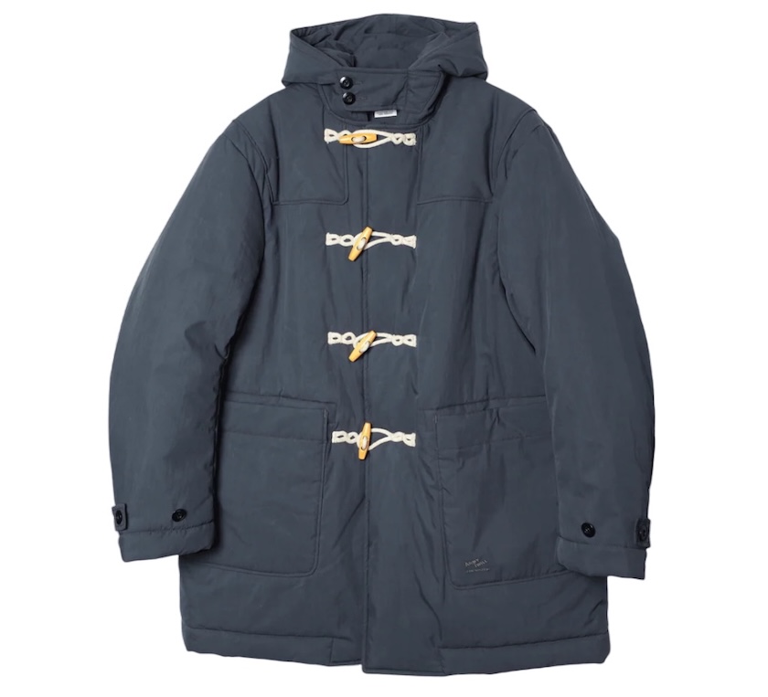 モチーフとなったイギリス軍のダッフルコートを、程良くワイドに仕上げた現代的なシルエットで表現。軽量のコットンナイロンをベースに、中綿には優れた保温性を誇るサーモライトを封入。