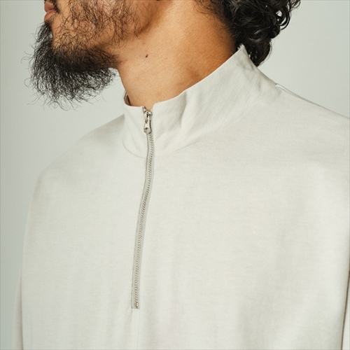 一枚で着こなせるのはもちろんインナーとしても適した、10オンスによる程良い厚みに仕上げたスウェット。スタイリングの幅を広げてくれるハーフジップタイプ。