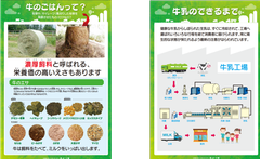 牧場のお仕事や牛乳ができるまでの工程パネルで楽しく学ぶことができます。