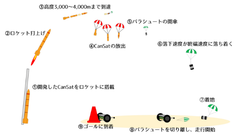 GPSと距離センサを組み合わせ、精度10メートルのGPSの誤差を克服し、0メートルの着地点を目指す高精度な位置制御ミッションを展開しました。