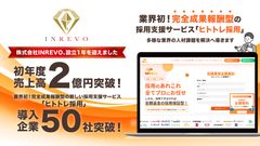 記事名:「業界初「完全成果報酬型」採用支援サービスでさらなる成長へ INREVO、設立1周年で支援企業数50社&売上高2億円を突破」