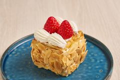 サクッと軽やかな食感とアーモンドの香り、いちごの甘酸っぱさが重なる贅沢なナポレオンパイです。