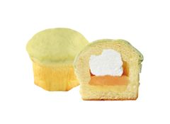 淡いメロン色の生地の中に包まれた3種類のクリーム、美しく層を成す断面は、発売当時から人気のポイント。