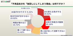 次いで、「分別や手続きが面倒」(20.16%)、「思い出があって決断できない」(16.78%)、「重くて運べない」(11.42%)が続いています。
