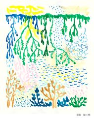 作品のタイトルは『生命の根(いのちのね)』です。富山に息づく自然や美しい景観、工芸などの有形無形の文化資産を、住む人や訪れる人々が大切に想える環境であってほしいという願いが込められています。原画には、富山の空、海、山、そして土地と、あらゆる自然環境からの恵みが湧いてきて、根のように広がり暮らしに繋がる姿が描かれ、そこから生まれる恵みがこの土地を支えて守ってくれることをイメージしています。