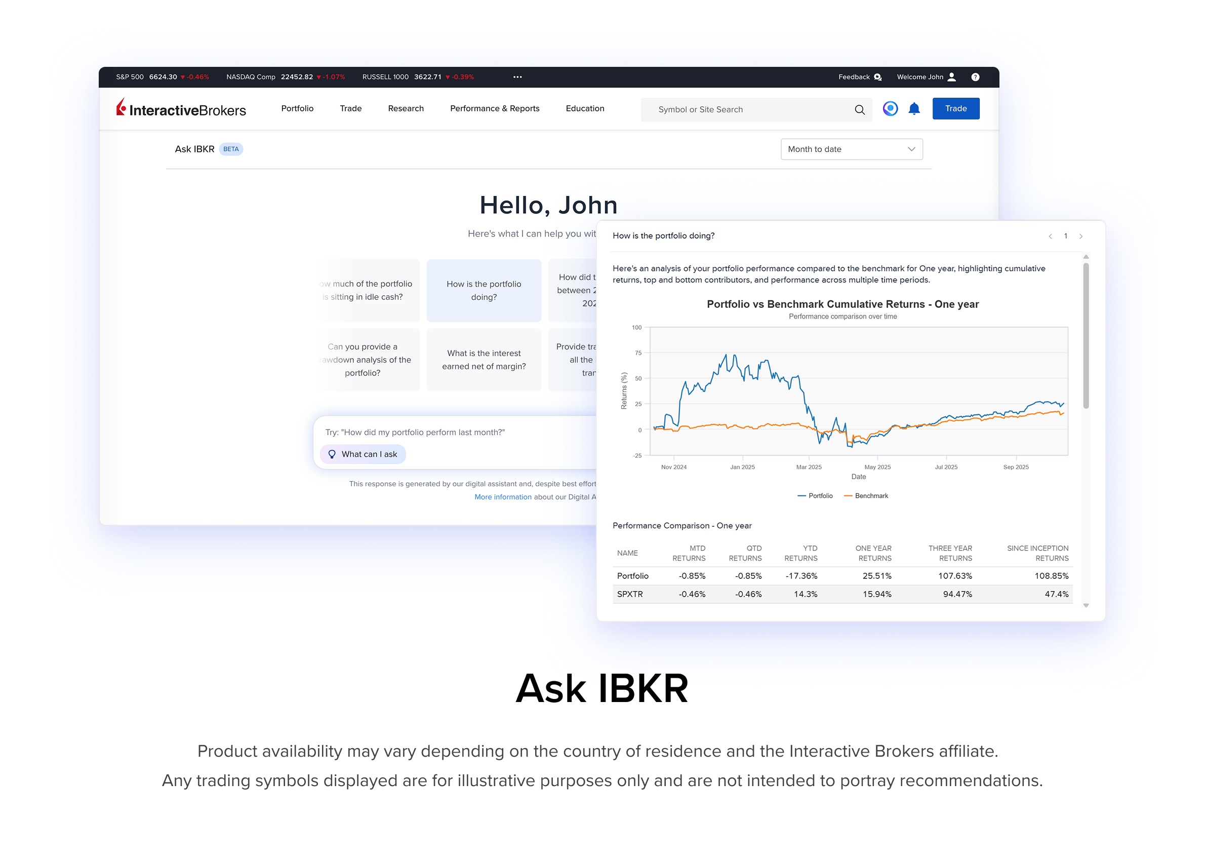 コネチカット州グリニッジ--(BUSINESS WIRE)--(ビジネスワイヤ) --世界的な自動電子ブローカーであるインタラクティブ・ブローカーズ(ナスダック:IBKR)は本日、自然言語による質問を通じてポートフォリオのインサイトを瞬時に提供するAI搭載ツール「Ask IBKR」のリリースを発表しました。