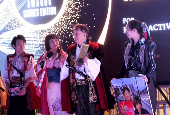 記事名:「カンヌ国際映画祭レポート/樽谷大助監督「平和アクティビスト賞」受賞/織田信長侍ショー「ちはやぶる神の国」で観客を魅了」
