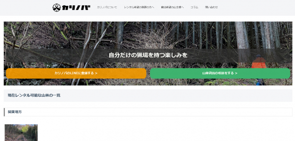 放置林をハンターに貸し出す山林シェアサービス「カリノバ」