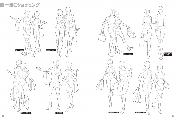 電話で話す/壁にもたれる/傘をさす/ピクニック/花束を差し出す/メイク/荷物を運ぶ/ショッピング/食事を作る/ランチ・ディナー/歌う/キャンパスライフ/勉強をする/趣味の時間/スポーツ/ダンス/結婚式/寄り添うふたり/写真を撮る/友達と過ごす/友達と対立/恋人と過ごす など