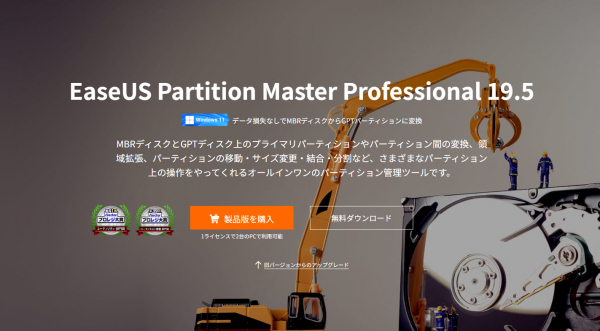 EaseUS Partition Masterは、ディスクのパーティションサイズ調整やシステムファイルの変換を簡単に行える他に、OSのクローンやデータ移行、ポータブルOSの作成など多様な機能が備えています。不良セクターを定期的にチェックし、破損したパーティションを修復することにより、パーティションを管理し、パソコンのパフォーマンスを向上させます。効率的で使いやすく、初心者から経験豊富なITプロフェッショナルまで、誰もが安心かつ安全に利用できます。