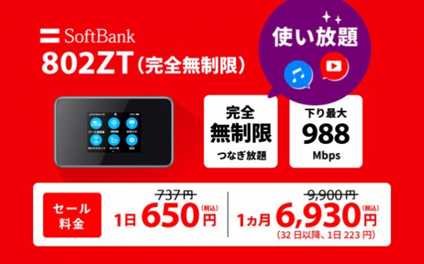 ・SoftBank 802ZT(完全無制限)※1※2