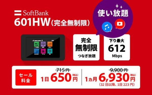 ・SoftBank 601HW/603HW(完全無制限)※1※2