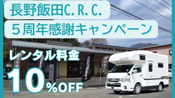 記事名:「長野飯田C.R.C.がおかげさまで5周年! 日頃の感謝を込めて特別割引キャンペーン実施! ~期間限定でレンタル料金10%OFF~」