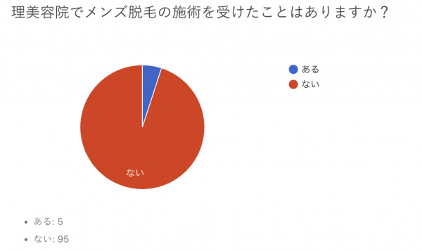 「理美容院でメンズ脱毛の施術を受けたことはありますか?」の回答は、“ある”が5%、“ない”が95%となりました。
