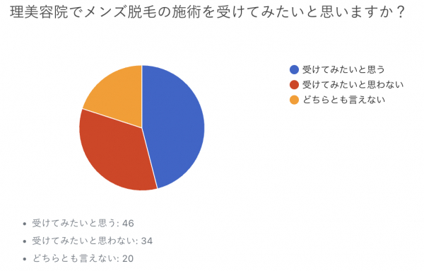 結果としては、“受けてみたいと思う”が46%と半数に満たないものの、少なくない男性が興味を示しており、一定の需要があることが分かりました。