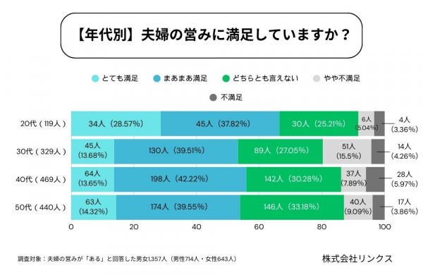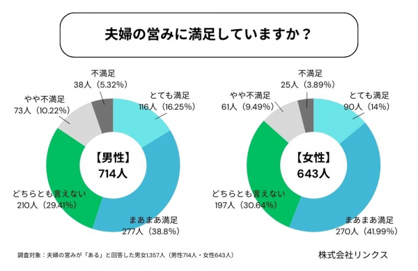 夫婦の営みに対する満足度(5段階評価)は以下の通りです。